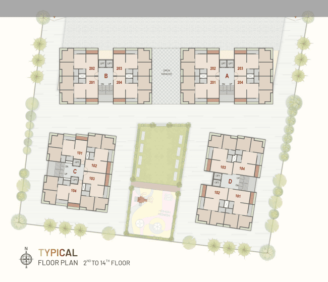 Standard vitrified tiles provided in the living room, dining area, kitchen, and all bedrooms.