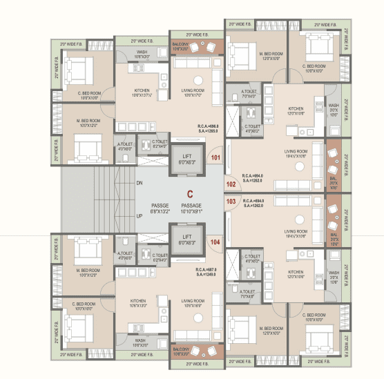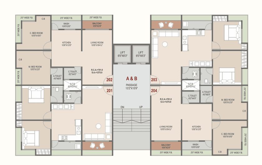 Standard sanitary ware and concealed C.P. fittings; plumbing features CPVC and UPVC pipe fittings for cold and hot water supply.